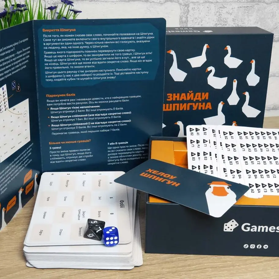 Весела настільна гра Знайди шпигуна від компанії Gamesly – справжній тренажер для справжніх агентів, наповнений хитрістю, блефом та асоціаціями.