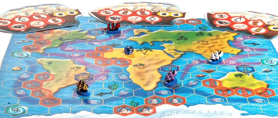 У своїй подорожі не варто забувати про те, що у Вас є суперники. Вони прагнуть якнайшвидше виконати завдання та отримати обіцяну начальником зоопарку нагороду! На цей випадок кожен із капітанів прихопив із собою гармату - хлопушку, яка може переміщати тварину з трюму корабля-опонента назад у свій ареал проживання. На жаль, працює вона лише на невеликій відстані – до сусідньої клітки. Не дозвольте самозванцям захопити Ваш приз!
